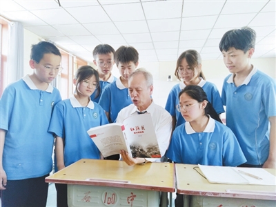图④4月22日,长篇纪实文学《红旗渠源头的故事》作者申树凤走进平顺县石城中学,向学生们分享创作经历,丰富青少年的精神文化生活。 张永清 摄