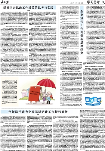 思想政治工作是推动企业改革发展的“基石”。国有企业是国民经济发展的重要支柱,是贯彻落实新发展理念和全面深化改革的重要力量。思想政治工作是国有企业贯彻落实党的路线方针政策的重要方式,是国有企业党的建设的重要组成部分,是国有企业合规管理、稳健经营、高质量发展的重要前提。加强和改进思想政治工作,对于深入宣传党的主张、坚决贯彻党的决定、全面领导基层治理、紧密团结动员群众、扎实推进改革发展具有深远的政治意义和重要的现实意义。因此,国有企业必须始终坚持以人民为中心的发展思想,定期研判分析,掌控时间节点,创新方式方法,高质量做好思政工作,为国有企业高质量发展凝聚人心、激发活力。
