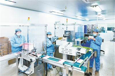 6月12日,在屯留康庄工业园区的山西振东五和堂制药有限公司外包装车间里,工人们熟练地将药品装盒、贴标、打包,自动化机械快速输送产品。整齐排列的成品、流转的包装材料与工人忙碌的身影,共同勾勒出高效有序的生产画面。 本报记者 张国平 摄