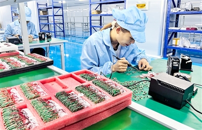 连日来,我市各企业收心聚力,迅速进入工作状态,相继吹响复工复产“集结号”,铆足干劲、开足马力,全力以赴赶订单、忙生产,冲刺首季“开门红”。图为2月28日,山西大润通科技有限公司生产车间内,工作人员正在焊接电子器件。本报记者 李燎原 摄