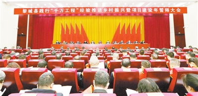 黎城山环水绕、高低错落、民风淳朴,就是一幅现代版的“富春山居图”。要学习践行“千万工程”经验,真正实现乡村由表及里、形神兼备的全面提升,让农民就地过上现代文明生活,让乡村成为人人向往的美好之地。规划先行。科学定位村庄发展类型和方向,构建完善乡村规划体系,明确建设重点和建设时序。注重保护传统村落和乡村特色风貌,坚持从细处着手,向实处出发,下足“绣花功夫”,以精致的标准、精细的管理,把望山见水的生态之美、诗情画意的田园之美、千村千面的乡土之美融入其中,提升建设品位,切实让和美乡村更有“精气神”。示范引路。坚持走集群化、集约化道路,整合资源资金,通盘考虑镇村规模结构和功能布局,依托交通条件、红色文化、山水资源、产业特色,集中连片建设示范廊带,打造和美乡村集群,把点状乡村串珠成链为连片风景,实现一村美、连村美、村村美。产业带动。围绕集体增富、农民增收,实施“收入双增”工程,因地制宜发展优势产业,打造乡土特色品牌。持续用好用活4种类型15种模式,发展壮大村级集体经济,推动农村集体经济收益反哺乡村发展,补齐农村基础设施短板,推动农村公共服务提档升级,真正实现“强了集体、富了农民”。