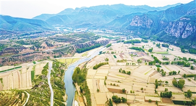 谷雨节气过后,浊漳河黎城段两岸,梯田与蜿蜒道路、绿色树木、村庄民居等相映成景,构成一幅生机盎然的春日生态画卷,美不胜收。
