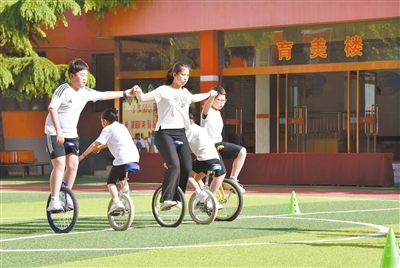 4月28日,潞州区英雄街小学学生在进行独轮车表演。当天,该校春季田径运动会开幕,学校精心组织了武术操、健美操、独轮车、花样跳绳、学生田径运动等项目,让师生在体育运动中锻炼身体、增强体魄,感受竞技的魅力。 张婉蓥 摄