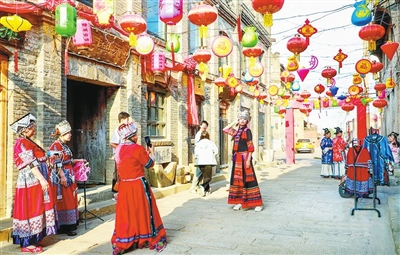 ② 5月3日,游客在上党区荫城古镇感受传统文化。