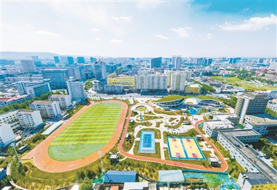 5月20日,航拍下的市体育公园设施完善、环境优美。市体育公园是我市深入贯彻落实全民健身国家战略的一项重大民生工程,是集运动健身、城市休闲、生态景观和地下停车于一体的生态型、智慧型城市公园,对完善城市功能、提升城市形象、改善人民群众生活品质、满足周边群众休闲健身需求具有重要意义。