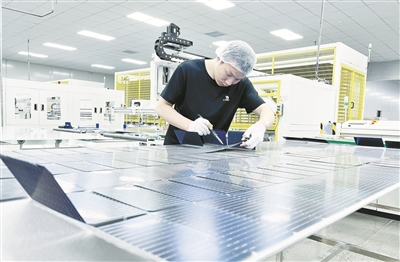 5月20日,潞安太阳能科技有限责任公司的生产车间内,工作人员在焊接产品组件。近年来,该公司超前研判市场,加大技术研发力度, 攻克多项技术难题,提品质、优工艺、增效益,企业和产品的市场竞争力不断提升。