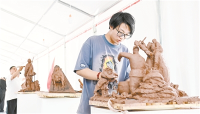 5月24日,参加2024·长治 武乡全国彩塑大赛的选手在打磨雕塑产品。随着2024·长治 武乡“在太行山上”全国彩塑大赛暨全国雕塑作品邀请展在武乡启幕,受邀的50名全国雕塑彩塑青年艺术家将在八路军文化园角逐大赛各奖项。