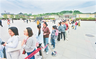 近日,在武乡八路军太行纪念馆,游客们正有序排队领取参观门票。5月份以来,武乡红色旅游不断升温,游客在追寻红色足迹中感受精神力量。