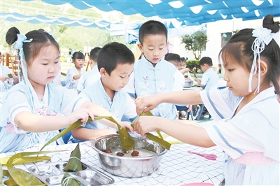 6月6日,武乡县机关幼儿园组织包粽子比赛,孩子们在实践中感受中华优秀传统文化的魅力。