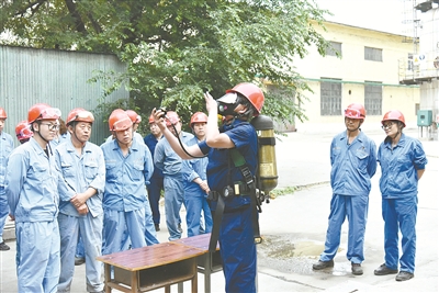日前,潞安化工天脊集团安全管理部消防应急救援大队的工作人员走进班组,为职工讲解防护器材正确使用方法,提升职工安全防范意识。 王爱军 摄