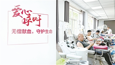 6月14日是世界献血者日,在市中心血站采血室内,社会各界爱心人士在医护人员的指导下有序献血,奉献自己的爱心。