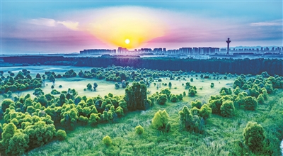 7月2日,在漳泽湖国家城市湿地公园,清晨的第一缕阳光洒下,薄雾翻腾、飘散,水草、树木、朝阳和湿地融为一体,构成了一幅秀美画卷。近年来,我市持续改善城市建设品质,坚持“增花、增绿、增彩、增园”理念,不断拓展城市绿色空间,丰富园林景观层次,让人民群众“推窗见绿、开门入园”,提升群众对美好生活环境的幸福感、满足感。