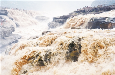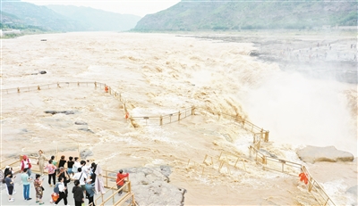 近日,随着黄河正式进入主汛期,受上游降雨增多和水库调节放水影响,黄河壶口瀑布水量大增,吸引众多游客。