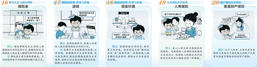 本次登载的保险知识漫画,主要介绍生活中常见的保险专业名词、保险险种等保险小常识,帮助大家更加全面了解保险,正确运用保险,为自己的生活保驾护航。