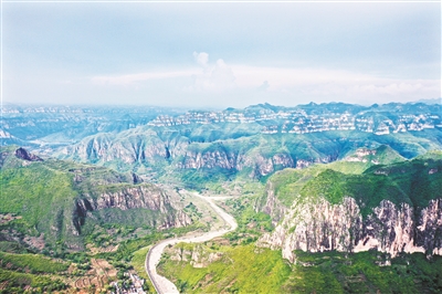 夏日时节,从空中俯瞰山西省长治市平顺县境内的太行山地貌,草木繁茂,绿意盎然,风光壮美如画。