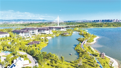 临山而厚重,濒水而秀雅。初秋的滨湖文旅服务中心,微风习习,凉意渐浓。作为我市生态建设的点睛之笔,滨湖文旅服务中心以其湖光水色、柳林花鸟的绿意空间,盛情迎接着八方宾朋。江南风格加之自然野趣,俨然一幅生态画卷,而这里也成为市民休闲旅游首选胜地。 本报记者 张国平 摄