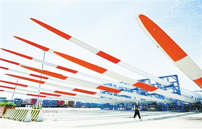 山东港口蓬莱港是中国北方重要风电设备作业母港。2022年以来,蓬莱港结合当地海工装备产业快速发展需求,确立了打造北方主要风电设备出口母港和重要海上风电中转港的目标,逐步形成了涵盖塔筒、叶片、主机及相关配件的风电产业链全线产品一站式配舱出海业态。