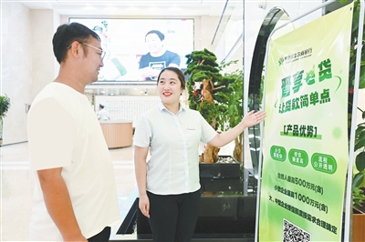 今年以来,漳泽农商行以提高贷款工作效能为抓手,明确重点工作,把握市场脉动,积极探索服务小微企业、乡村振兴新模式,持续为实体经济和“三农”经济发展蓄势赋能。图为该行工作人员为客户介绍“晋享e付”金融产品 ,提升客户体验。 景丹丹 摄