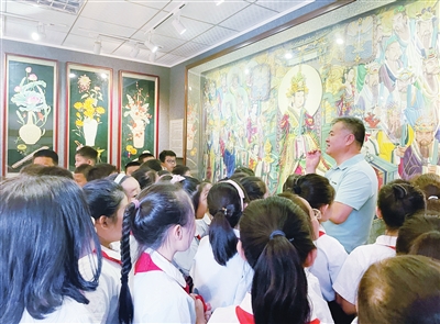 8月19日,小学生在长治堆锦博物馆参观。暑假期间,全市各博物馆里,前来研学的中小学生络绎不绝。他们在博物馆认识珍贵展藏,聆听专业讲解,参与互动活动,在一场场中华优秀传统文化盛宴中感受非物质文化遗产的丰富多彩、博大精深。