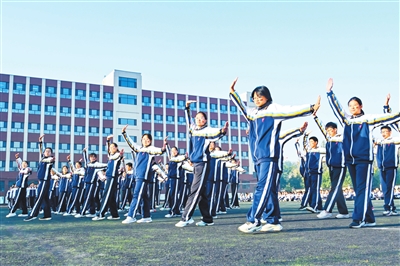 日前,太行中学举行武术操比赛。近年来,该校坚持阳光体育运动理念,广泛开展大课间、武术操、运动会、篮球赛、足球赛等体育活动,培养和引导学生热爱体育运动,养成良好的体育运动习惯,让学生在体育锻炼中享受乐趣、增强体质、健全人格、锤炼意志。
