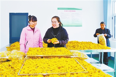 11月1日,壶关县东井岭乡罗掌村,村民们正忙着包装菊花茶。近年来,东井岭乡积极探索发展特色产业,大力推进菊花种植加工销售,为农民增收开辟了新途径。