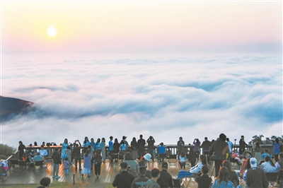 11月3日,游客在云南省景洪市基诺山基诺族乡巴卡村观赏云海日出。