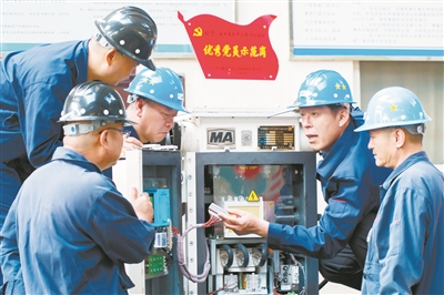 11月10日,在潞安化工漳村煤矿生产车间,技术能手在与同事研讨井下电器设备检修等技术。今年以来,该矿通过实施“揭榜挂帅”项目、打造精细化管理网络、构建全面预算管理体系等举措,持续提升生产经营质效。