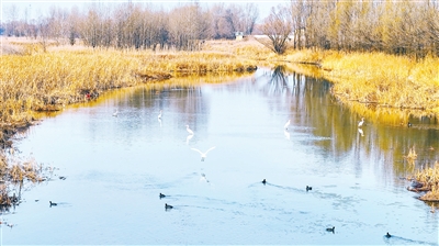 12月9日,在漳泽湖国家城市湿地公园的湖面上,众多鸟儿在嬉戏觅食,构成一幅美丽的生态画卷。近年来,我市生态环境不断改善,吸引众多野生鸟类前来栖息繁衍,湿地内的鸟类种群数量不断增多,已成为鸟的乐园。 李燎原 摄