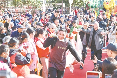 12月16日,在德清县莫干山镇后坞村,肥壮的“年猪”吸引了村民和游客围观。当日,浙江省湖州市德清县莫干山镇后坞村举办第五届民俗集福节“年猪饭”活动,打年糕、舞龙灯、做圆子、制礼糕、看表演,村民们与前来观摩的游客一起感受乡村传统民俗年味,喜迎新年。新华社发(姚海翔 摄)
