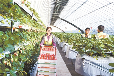 12月22日,沁源好乐草莓种植股份有限公司种植基地内,果农们正忙着采摘,让草莓抢“鲜”上市。近年来,沁源县充分发挥产业优势,通过规模化、特色化、绿色化、品牌化发展,为农民增收致富开辟新途径,有力推动当地经济发展。本报记者 张国平 摄
