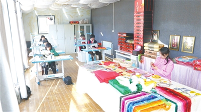 每次接到订单,绣娘们便三五结伴来到工坊,领取不同的任务。绣娘们或坐到机器旁进行刺绣,或拎一包经过裁剪加工的小配件回家,利用闲暇时间缝制。一批订单下来,绣娘们能拿到几百到上千元不等的报酬。今年,勒绣苑文化发展有限公司制作刺绣产品上万件,产值超20万元。