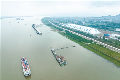 图②:2024年6月5日拍摄的黄石新港三期工程(无人机照片)。