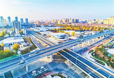 跨线桥气势雄浑、下穿通道简约大气、绿化景观错落有致……从项目起点太行东街出发,途经紫金东街跨线桥、府后街立交桥、东大街高架桥、长钢铁路桥、解放东街—德化门街跨线桥、太岳大街跨线桥、潞阳门路跨线桥、延安南路跨线桥、英雄路下穿通道,9座造型不同的桥梁和下穿通道,以及宽阔平整的辅道、红色的非机动车道、灰色透水砖铺设的人行步道,宛如一道亮丽的风景线,串联起城市东南部区域。市政府工程建设事务中心主任李斌介绍:“原来的东南外环路面破损严重,断面形式不一,沿线有20多个大小红绿灯路口,通行效率低,改扩建后的快速通道,道路宽度由原来的22米增加到55米,主路双向6车道,辅道双向4车道,全线主路没有设置红绿灯,一路畅行。”东南外环全线贯通,对常年往返潞城区和上党区上班的张超来说是个好消息:“一趟至少能省20分钟,再也不用担心路上拥堵了,虽然生活工作在两个区,但这条路让我的通勤生活不再难。”