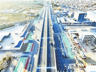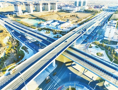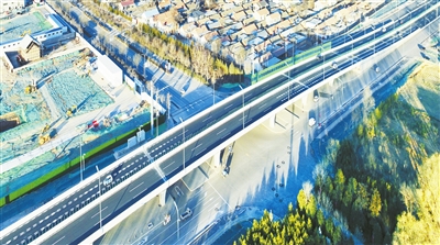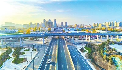 跨线桥气势雄浑、下穿通道简约大气、绿化景观错落有致……从项目起点太行东街出发,沿途的跨线桥、高架桥、立交桥等9座造型不同的桥梁和下穿通道,以及宽阔平整的辅道、红色的非机动车道、灰色透水砖铺设的人行步道,宛如一道亮丽的风景线,串联起城市东南部区域。