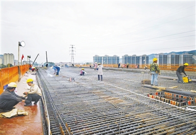 东南外环快速通道改扩建工程北起太行东街,西至光明路,道路全长约11.6公里,全线建设1座立交桥、5处跨线桥梁、2处下穿通道、1座支线上跨桥梁、5处人行天桥,以及公交站台、停车位、景观绿化等。开工以来,项目部倒排工期、挂图作战,不断优化施工方案,强化技术支撑,抢工期赶进度,多个工区同步施工,确保工程质量和进度。