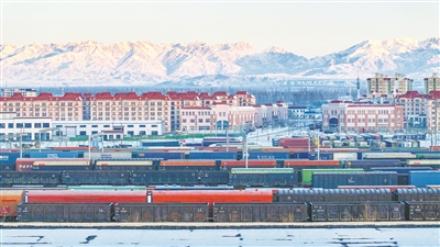辞旧迎新之际,新疆霍尔果斯口岸,来自全国各地的货品搭乘中欧(中亚)班列,发往共建“一带一路”国家。