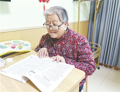 李欣荣(化名),今年83岁,当初是陪老伴儿一起来的敬老院,但老伴儿去世后她一直住在这里。李欣荣耳朵不太好,在敬老院居住的5年时间里,她不仅得到了护工的悉心照料,还交到了很多朋友,而且始终保持着爱看书的习惯,每天读书汲取“营养”,有时还学习一些中医理论,这让她获得了极大的精神享受。