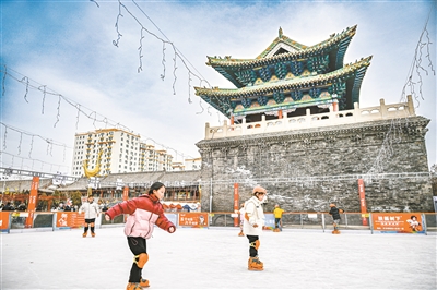 1月4日,潞州区城隍庙商业广场热闹非凡,不少市民前来体验游玩,感受冰雪运动带来的激情与快乐。近年来,我市拓展全民健身项目,提升全民健身普及水平,在全社会营造崇尚健身、参与健身、追求健康文明生活方式的氛围。 本报记者 司敏 摄