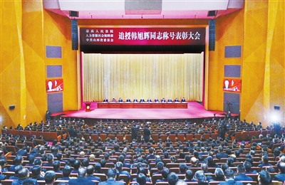 2024年12月19日,最高人民法院、人力资源和社会保障部、山西省委在太原联合召开追授韩旭辉同志称号表彰大会,追授韩旭辉同志“全国模范法官”“山西省优秀共产党员”称号。