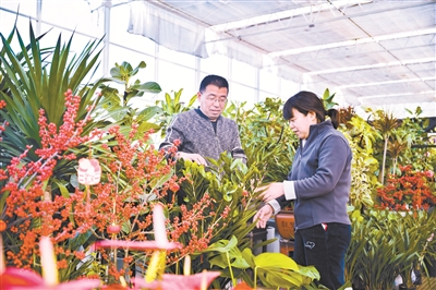 随着春节的到来,我市各地花卉市场迎来销售旺季,花卉消费热潮涌动。图为1月24日,潞州区鹿家庄花卉市场里,市民在选购花卉。