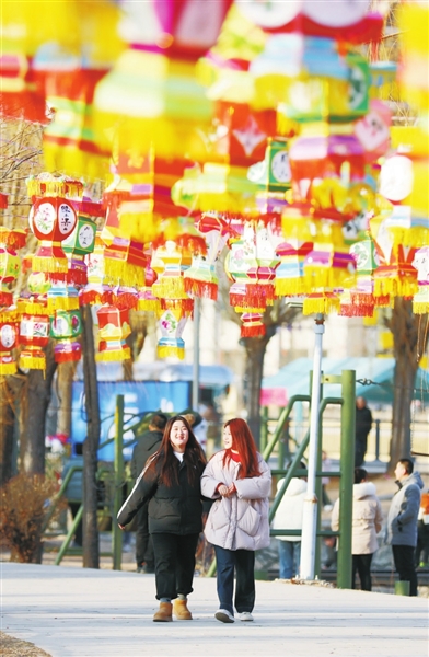 2月9日,武乡县街头挂满各式各样的花灯,营造出浓浓的元宵节氛围。 李勇 摄