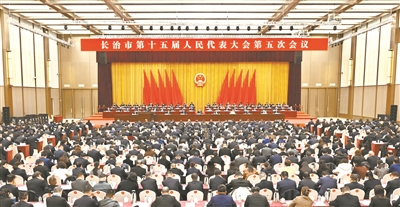 上午9时,吴小华宣布:长治市第十五届人民代表大会第五次会议开幕。会场全体起立,奏唱国歌。