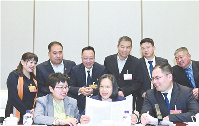 讨论政府工作报告、交流提案建议……连日来,出席市两会的人大代表们和政协委员们肩负使命、履职尽责,谈感受、提建议、话发展,为全市高质量发展建真言、献良策。 徐翔 石玉成 摄