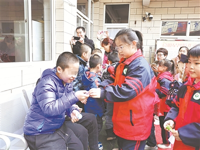 3月1日,市友谊小学志愿者们走进启明星智障儿童托育中心,开展“让爱随行,让爱永恒”雷锋月志愿服务活动,给孩子们送上玩具等礼物,送去温暖与关爱。 本报记者 高琪 摄