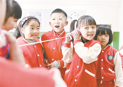 3月3日,在云南省丽江市新苗幼儿园,小朋友们在做游戏。
