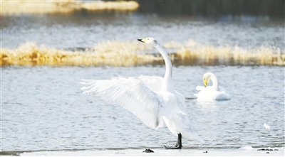 随着气温逐渐回升,大批天鹅、苍鹭等候鸟飞临北京密云水库,在这里栖息觅食、繁育后代。