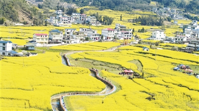 3月14日在云南省文山壮族苗族自治州马关县夹寒箐镇上布高村拍摄的油菜花田。 新华社发(熊平祥 摄)