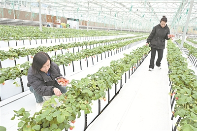 3月17日,上党区振兴小镇的数字蔬菜大棚里一片生机勃勃,莓香四溢,棚内的奶油草莓进入采摘期,吸引众多市民游客纷至沓来,体验采摘之乐。上党区依托草莓产业延伸发展休闲农业和乡村旅游,吸引游客观光采摘,带动周边餐饮、民宿等产业发展,有效助农增收。