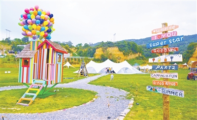 图①:中山头村秋谷里露营地迎来大批游客,大家在这里实现亲近自然的愿望。