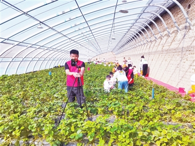 图②:在喜峰村的草莓大棚,市民感受田园风光的同时,品尝新鲜又美味的草莓。